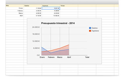 Haga cálculos con las potentes funciones y fórmulas de las hojas de cálculo. También puede agregar gráficos complejos, generar informes de tablas dinámicas y agregar filtros, entre otras operaciones..