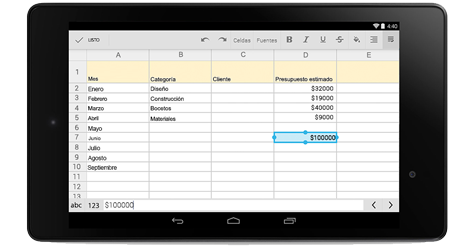 Cree, edite y comparta hojas de cálculo desde su teléfono o tablet, esté donde esté. Trabaje en Hojas de cálculo aunque no tenga conexión.
