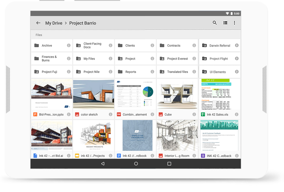 Mantenga todo su trabajo en un solo lugar con acceso seguro desde su computadora, teléfono o tablet.